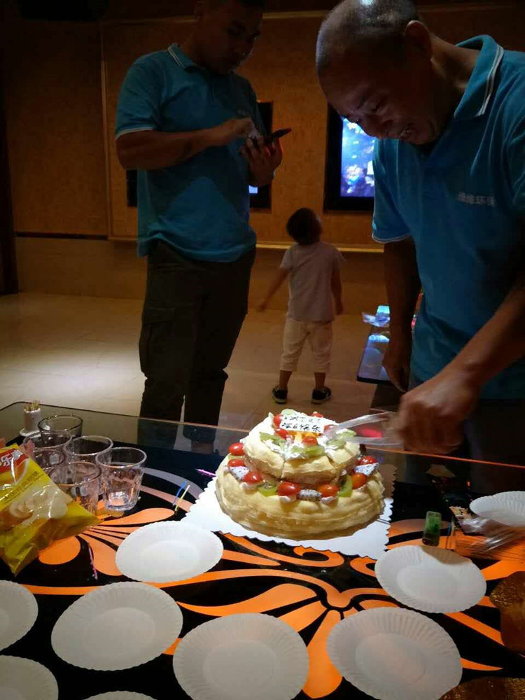 ????? 2017年?7月,公司高層領(lǐng)導(dǎo)齊聚,為公司本季度過生日的家人過生日。生日聚會上壽星們深深地感慨:“非常感謝公司領(lǐng)導(dǎo)對我們的關(guān)心,公司為我們過生日,我很感激,但愿每位員工都能感受到來自廣東綠維環(huán)保大家庭的溫暖!”???