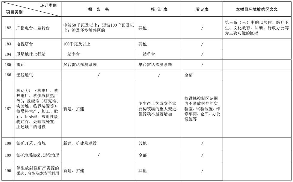 第八條?本名錄自2017年9月1日起施行。2015年4月9日公布的原《建設(shè)項目環(huán)境影響評價分類管理名錄》(環(huán)境保護部令第33號)同時廢止。