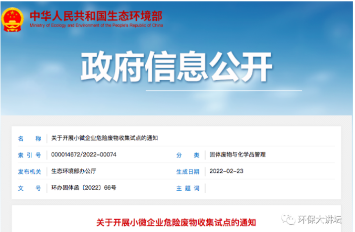 生態(tài)環(huán)境部:關于開展小微企業(yè)危險廢物收集試點的通知 惠州環(huán)保 惠州危廢回收 惠州固廢平臺填報