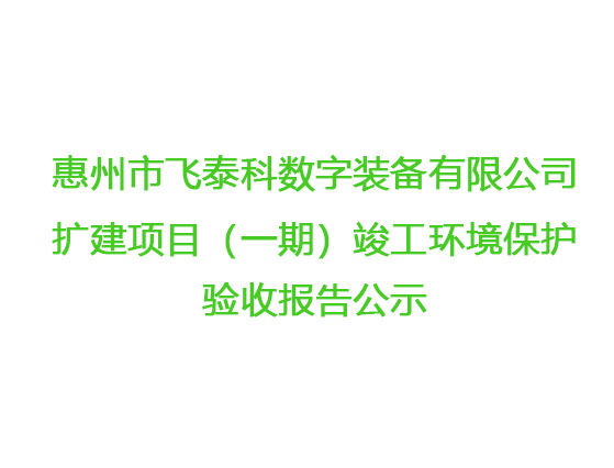 惠州市飛泰科數(shù)字裝備有限公司擴(kuò)建項(xiàng)目(一期)竣工環(huán)境保護(hù)驗(yàn)收?qǐng)?bào)告公示