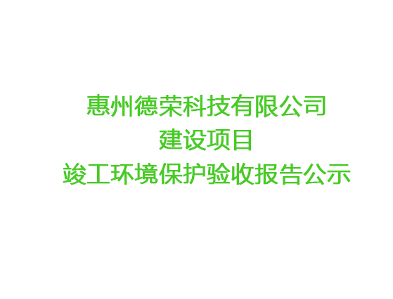 根據(jù)《國(guó)務(wù)院關(guān)于修改〈建設(shè)項(xiàng)目竣工環(huán)境保護(hù)管理?xiàng)l例〉的決定》(國(guó)務(wù)院令第682號(hào)),以及環(huán)保部《關(guān)于發(fā)布的公告》(國(guó)環(huán)規(guī)環(huán)評(píng)[2017]4號(hào)),現(xiàn)將惠州市德榮科技有限公司建設(shè)項(xiàng)目竣工環(huán)境保護(hù)驗(yàn)收內(nèi)容(包括驗(yàn)收?qǐng)?bào)告、驗(yàn)收意見(jiàn))公示。